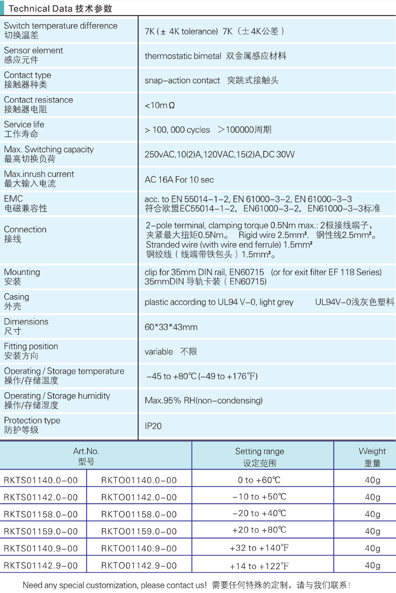 緊湊型溫控器RKTS 011 / RKTO 011